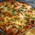 A hearty, oven-baked casserole made with layers of tender cabbage, seasoned ground beef, tomato sauce, rice, and cheese. Cozy, filling, and perfect for family meals or meal prep.