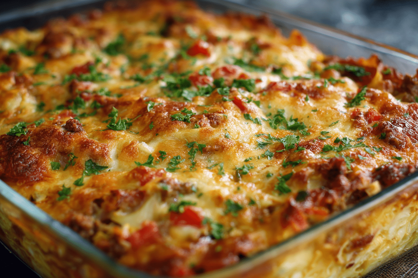 Picture this: tender layers of cabbage, richly seasoned ground beef, savory tomato sauce, and melted cheese all baked together into a bubbling, golden casserole. The aroma alone brings everyone to the kitchen before it even hits the table. Whether you’re trying to stretch a pound of ground beef or use up that head of cabbage lingering in the fridge, this is the recipe you’ll return to again and again.