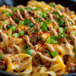 With a rich, savory beef base, tangy ketchup and mustard, and creamy cheese sauce, this dish feels like a cheeseburger and mac and cheese had the most delicious baby. It’s fast, easy, and packed with familiar, nostalgic flavors—ideal for feeding a family or just treating yourself on a weeknight.