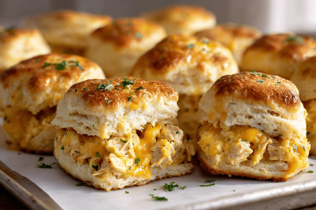 Flaky, buttery biscuits filled with scrambled eggs, chicken, and melted cheese. Perfect for quick breakfasts, meal prep, or brunch on the go.