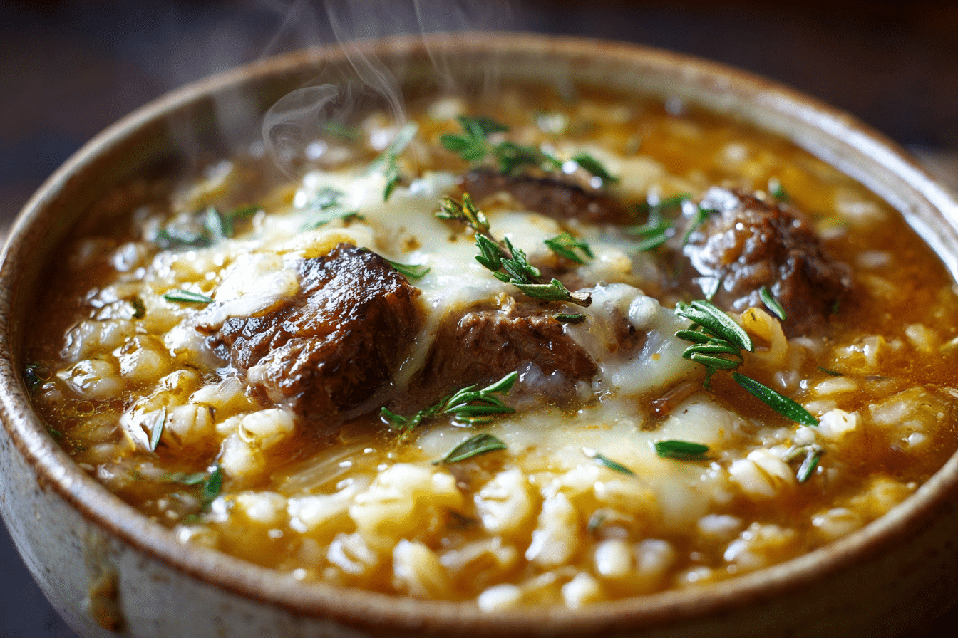 Creamy French Onion Beef and Barley Soup: A Rustic, Rich One-Pot Comfort Meal