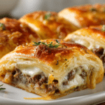 This recipe is simple enough to whip up on a busy weeknight, yet it carries a wow factor that makes it perfect for guests or family dinners. It brings together deep, caramelized onion flavor, savory beef, and gooey cheese in each bite—all wrapped in soft, golden pastry. If you love meals that deliver on flavor with minimal effort, this one’s going straight into your regular rotation.