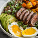 When you’re craving something hearty, energizing, and undeniably satisfying, these High-Protein Steak & Egg Power Bowls deliver everything your appetite demands. Packed with bold flavors and a generous hit of protein, this dish brings together juicy steak slices, velvety eggs, and a nourishing base of grains and greens for a balanced and deeply fulfilling meal.