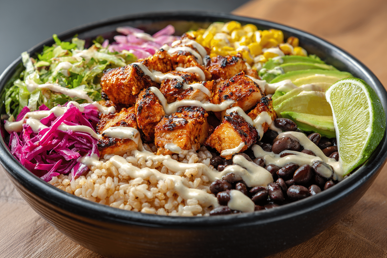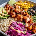 This recipe is perfect for both meal prep and family dinners. It’s easy to prepare in batches, simple to customize, and comes together with minimal fuss. The bold hot honey glaze gives the chicken a rich kick, while grains and veggies create a satisfying, well-rounded base. Creamy avocado, crunchy slaw, and a splash of lime take it over the top.