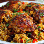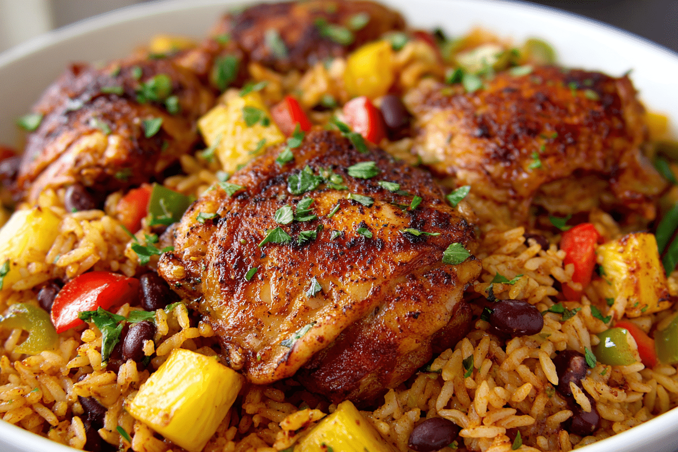PrintA one-pot Caribbean chicken and rice dinner featuring crispy chicken thighs, seasoned coconut rice, and colorful peppers. Bold, balanced, and easy to make in under an hour.