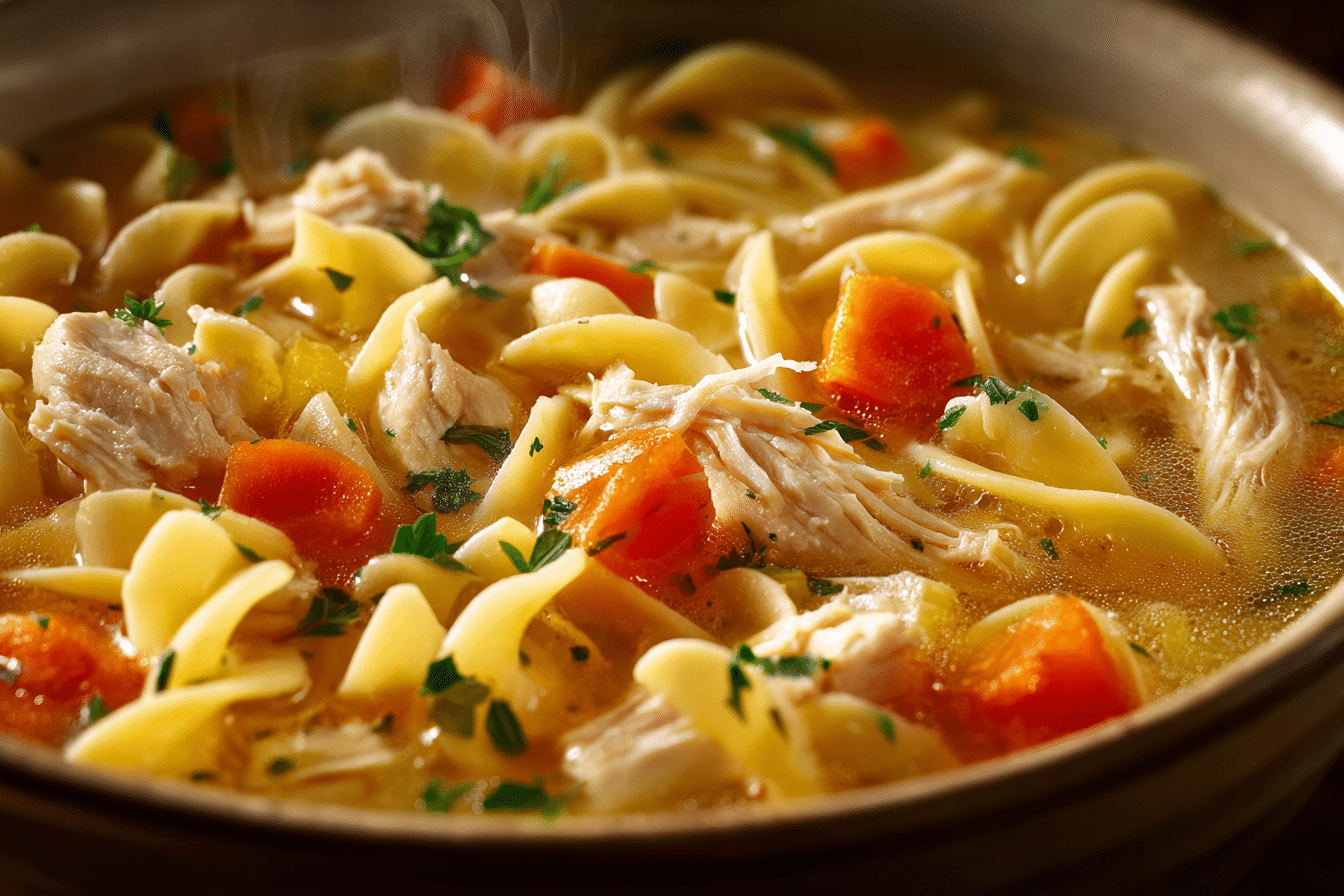 Each bowl offers tender bites of chicken, perfectly cooked noodles, and vegetables that retain just enough texture. Whether served for a cozy family dinner or when you want something nourishing and straightforward, this soup remains a dependable favorite.