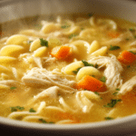 This soup is built for busy days when time is limited but a homemade meal still matters. Using simple ingredients and a streamlined cooking method, Quick and Easy Chicken Noodle Soup delivers deep flavor without hours of simmering. The broth remains clear and golden, carrying gentle notes of garlic, onion, and herbs.