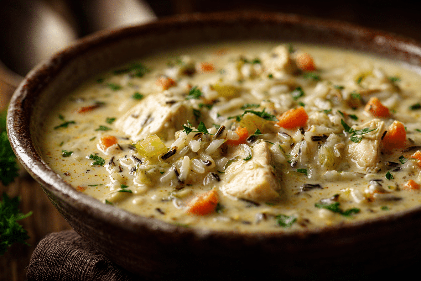 This dish is a balanced, all-in-one meal. Chicken delivers protein, wild rice contributes fiber and complex carbs, and the vegetables offer a healthy dose of vitamins. The creamy broth ties everything together into a filling and flavorful bowl.